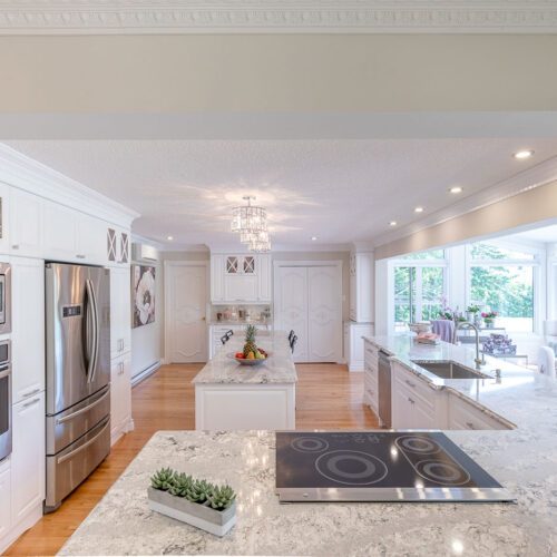 Les cuisines classiques sont définies par l’élégance et le charme du naturel. Elles délivrent une atmosphère douce, chaleureuse, raffinée, intemporelle et discrète rappelant les nombreux moments passés entre amis ou en famille autour d’un délicieux repas. Une cuisine classique peut mélanger les styles rustiques et modernes pour conférer à votre pièce un aspect indémodable, élégant et sophistiqué. De la même manière, une cuisine classique mélange les matériaux, les formes, les tons et les textures. On peut y retrouver des matériaux traditionnels comme des armoires en bois verni ou le bois massif avec des moulures, assortis avec le cuivre et l’acier, des portes d’armoires en thermoplastique de type Shaker de couleur claire (beige, marron pâle, crème ou blanc) avec des portes en verre, un comptoir en granit, des arches de colonnes ouvragées, et bien d’autres éléments. Elle possède également de grands rangements, de larges plans de travail ainsi qu’une hotte en métal ornée ou décorative avec des moulures. L’utilisation du bois dans les cuisines classiques apporte une atmosphère chaleureuse et réconfortante.